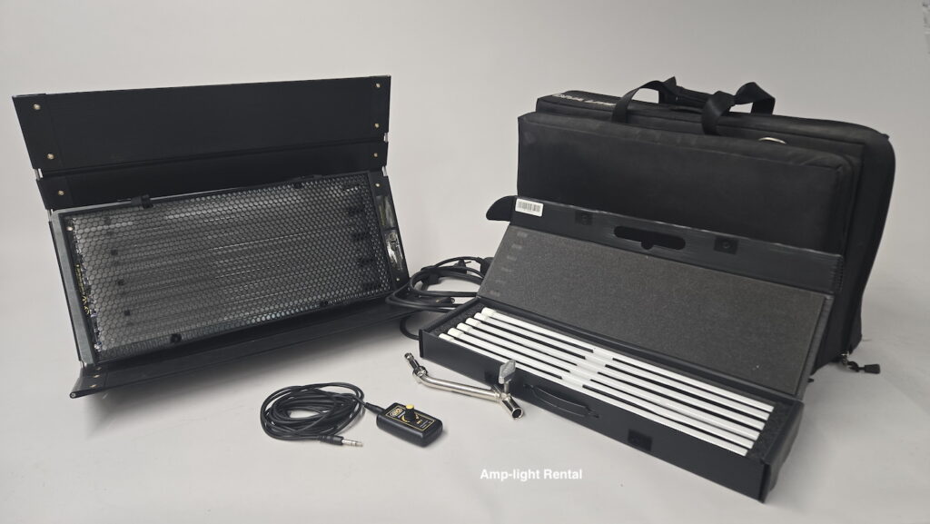 Includes carrying bag, power supply, V-Mount adapter plate, and 3 diffusion panels.