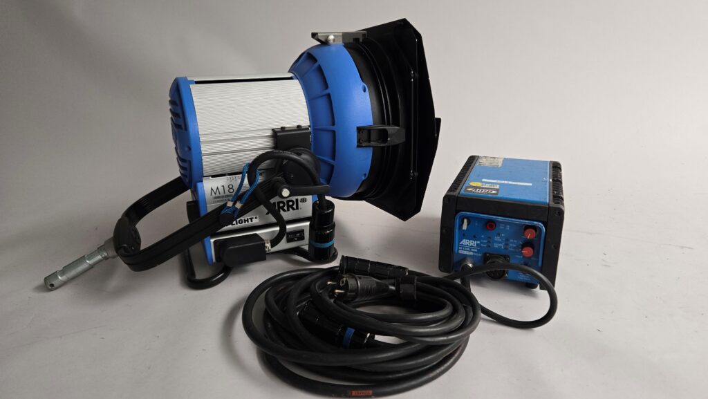 Arri M18 in excellent condition, including lamp cable and high-speed ballast. 112 burn hours. Comes with barn doors and bulb.