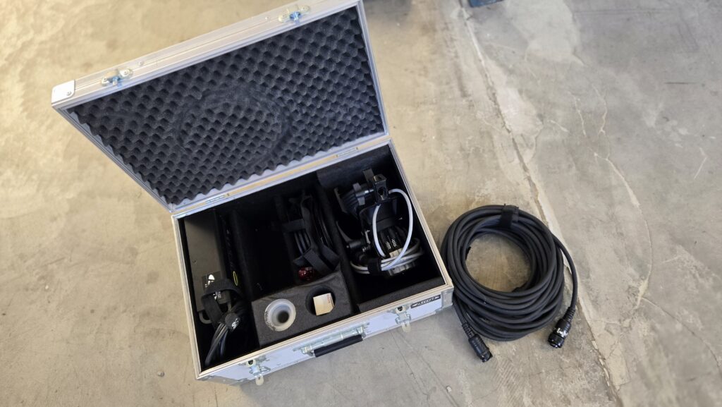 Includes case, power supply, DMX cable, and mount